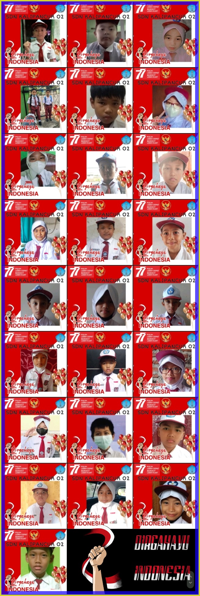 Peringatan HUT RI ke 78 di SDN Kalipancur 02, kamis =, 17 Agustus 2023 berlangsung hikmat dan diteruskan dengan pembagian hadiah lomba anak dan guru.